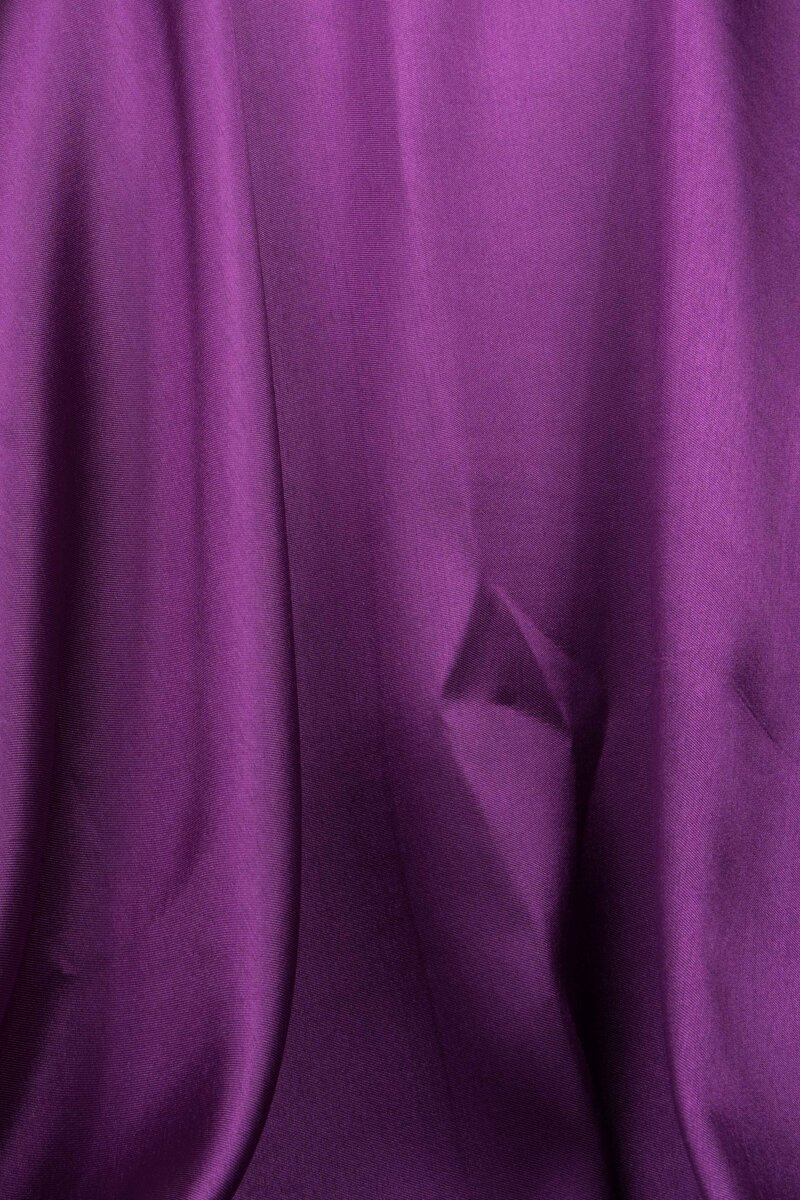 Mikado pesante dal carattere strutturato e luminoso, un tessuto iconico dell’alta moda che unisce consistenza e raffinatezza. La sua superficie compatta e leggermente lucida riflette la luce con eleganza, esaltando la profondità del colore intenso.