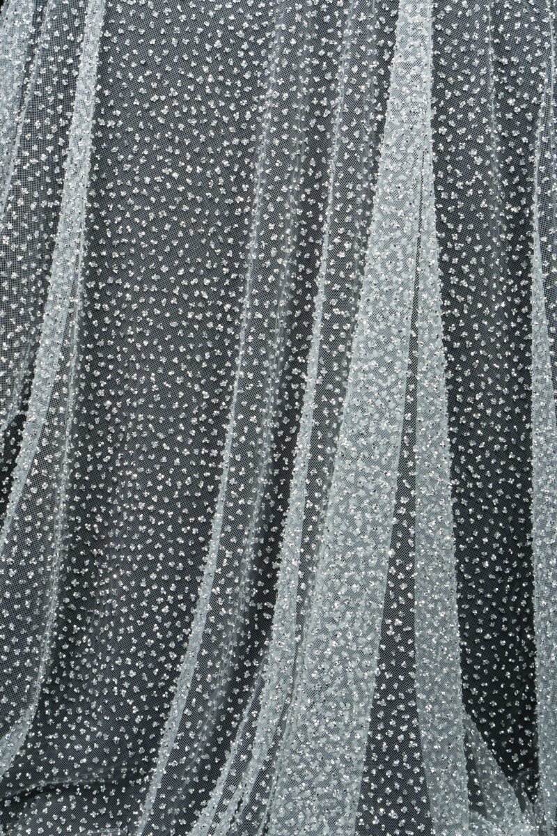 Tulle glitterato dal fascino luminoso e delicato, caratterizzato da una base trasparente arricchita da una fitta distribuzione di micro punti luce.