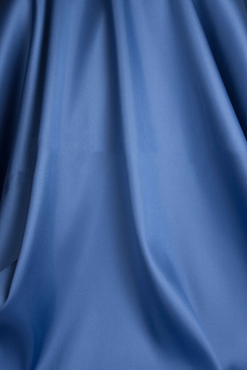 Tessuto caratterizzato da una superficie compatta e finemente strutturata, con una luminosità sobria e raffinata. A differenza del mikado tradizionale più rigido, questa variante presenta una mano più flessibile e una caduta controllata, capace di unire struttura ed eleganza fluida.