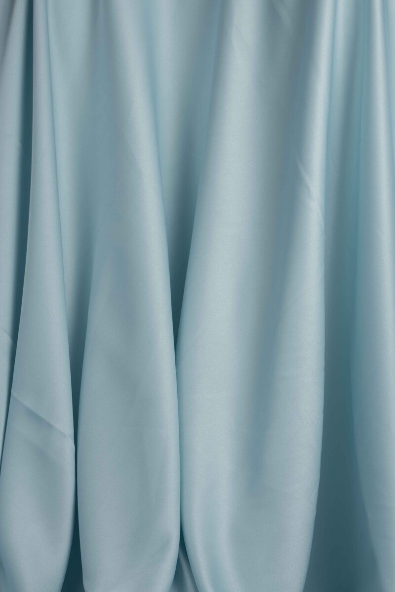 Tessuto satinato dalla mano morbida e fluida, caratterizzato da una superficie liscia e luminosa che valorizza le linee del capo con eleganza naturale. La struttura leggera garantisce una caduta scorrevole e delicata, ideale per creare movimenti armoniosi e drappeggi morbidi senza rigidità.