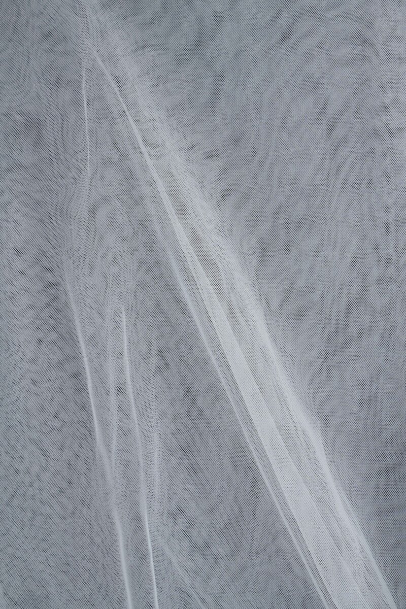 Tessuto impalpabile e trasparente, dalla mano leggera e ariosa, caratterizzato da una trama a rete finissima e uniforme. Il colore bianco puro esalta la luminosità del materiale, donando un effetto etereo e delicato. Morbido ma strutturato quanto basta, questo tessuto offre una caduta fluida e naturale, ideale per creare volumi leggeri e sovrapposizioni. Perfetto per abiti da cerimonia, veli, dettagli sartoriali, inserti decorativi e creazioni che richiedono eleganza e leggerezza.